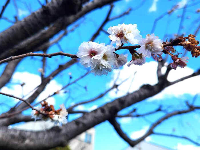 梅かと思ったら、春と秋に花をつける冬桜かも。そう言えば10月頃にも咲いてた。