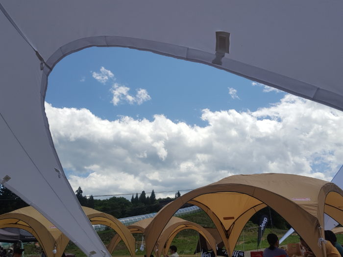 妙高高原あたり、土曜日もよいお天気。梅雨の走りみたいな日々から解放されて、気分も上機嫌。などと言えば「仕事とは思えない」とご指摘されそうですね。イベントに集まる人々の楽しそうな様子を見るのが今回のミッションだから、自分がまず上々気分に馴染まないとならないのです。