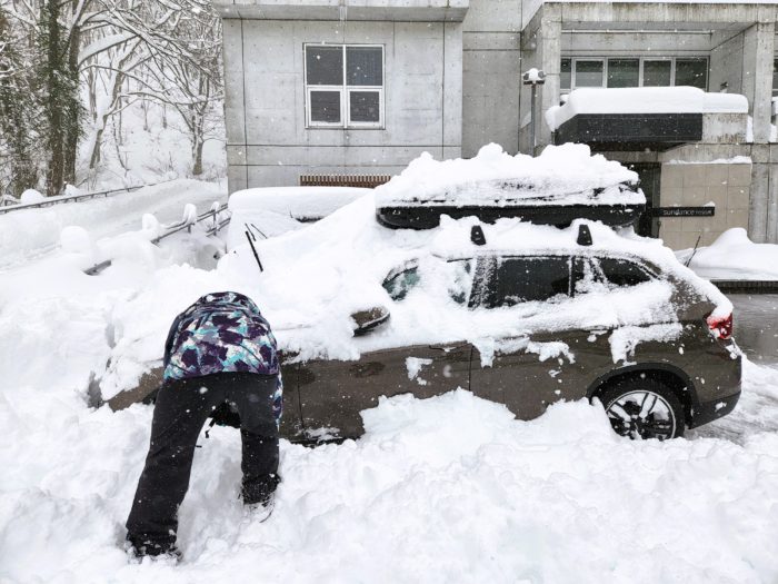 再び苗場ですが、こちらの方、一晩で積もった雪を掻いておられました。