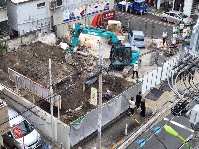 地面を掘り始めました。地中のガソリンタンクを引き上げるのかな。