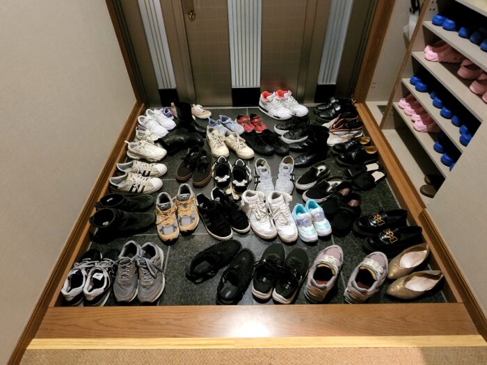みんなで花火を見た会場の玄関。ここだけなら正月の親戚の家みたいね。オレの靴はどこ?