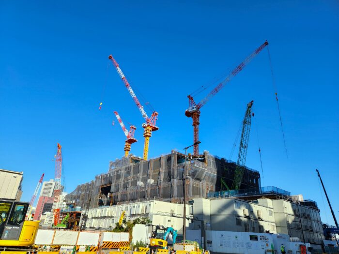 これも高輪ゲートウェイ駅周辺。もはやクレーンの見本市。