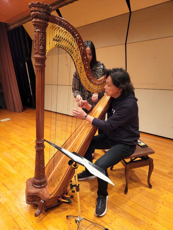 人生初ハープ。持ち主の演奏は天使も憧れる音色でした。