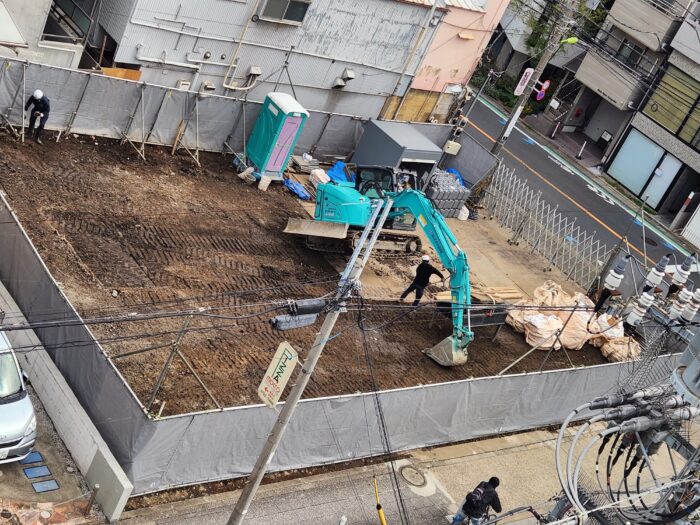 ガソリンスタンド撤去作業。いつの間にか、ほぼ平地になっていました。