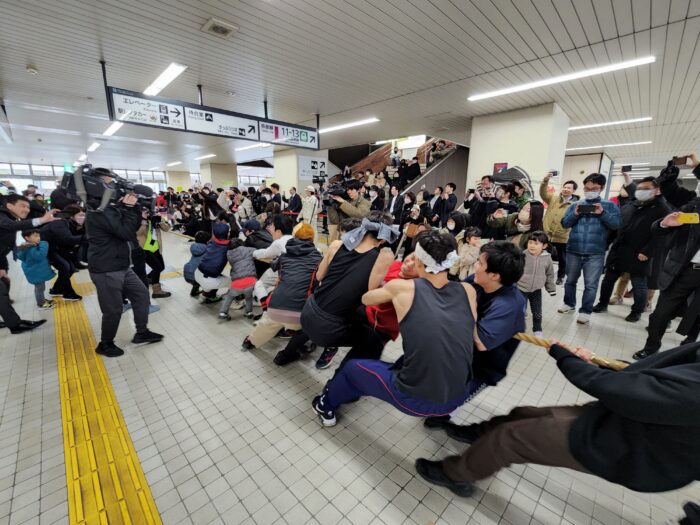 JR燕三条駅の構内で綱引き大会って、嘘っぽいでしょ?