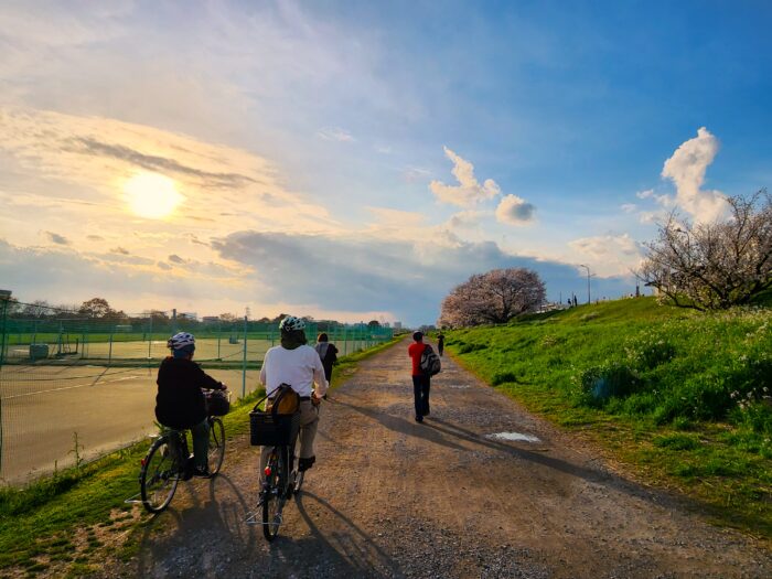この間の日曜日の河川敷に訪れた夕暮れ。
