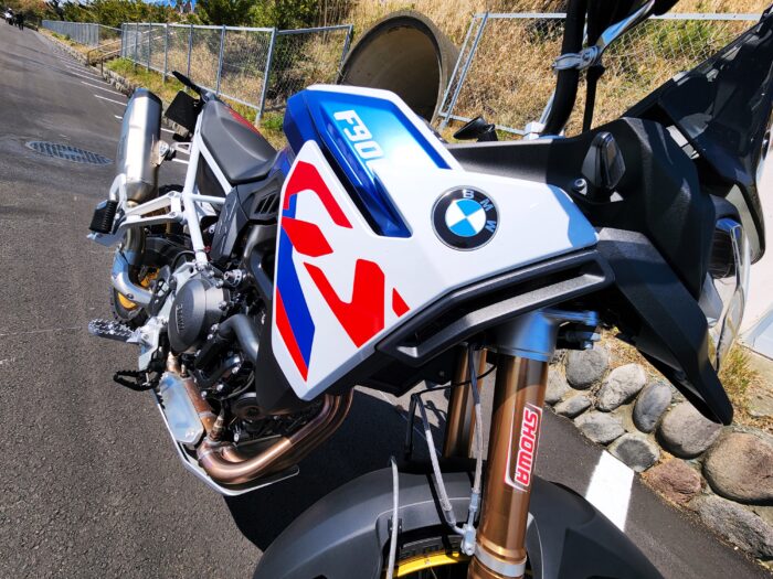 このオートバイ、つま先が着くか着かないかギリなほどシートが高いのよ。
