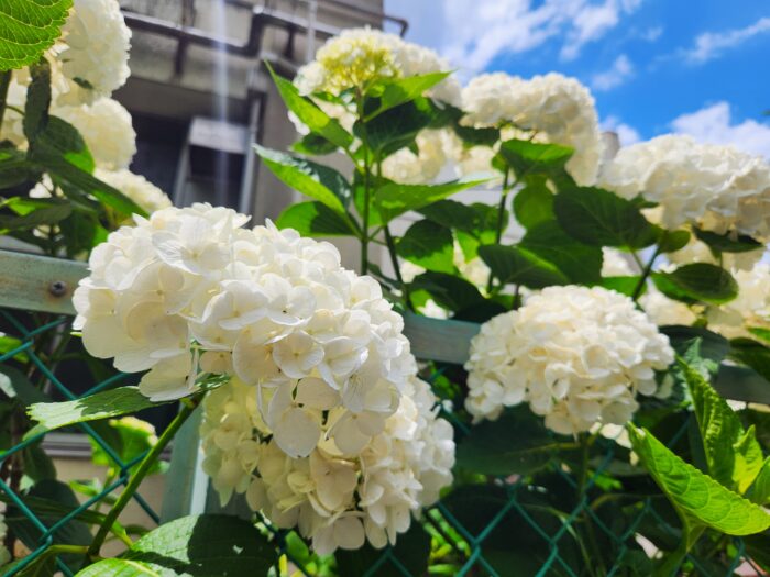 紫陽花は土壌の酸性度で色が変わるのに、白いのは何色にも染まらないそうな。