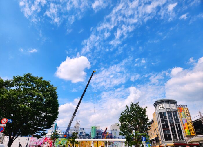 これだけの空の広さは、工事中だけのものなんだろうなあ。