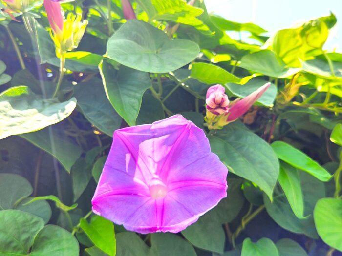 誰も目に留めないサービスエリアの片隅に咲く、昼過ぎのアサガオが痛々しいほど健気だった。