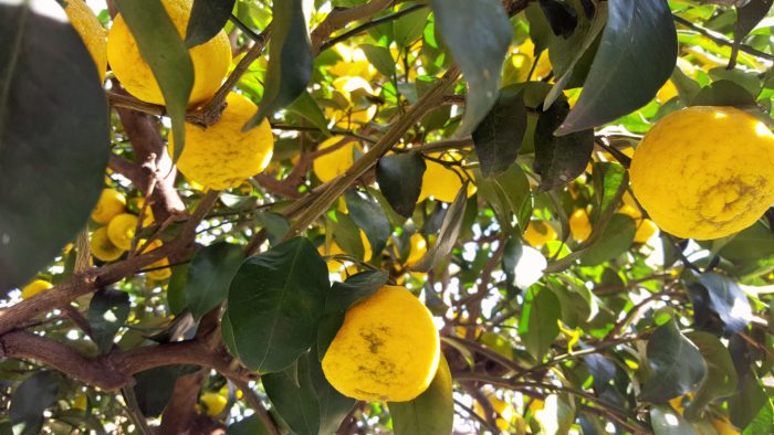 レモンなのかな? 住宅街の軒先でもたわわに実るんだね。