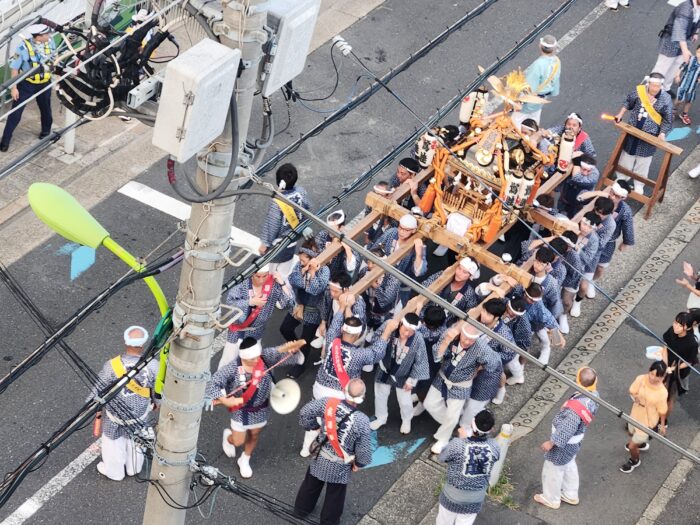 秋の例大祭。毎年ベランダの下を練り歩いてくれます。
