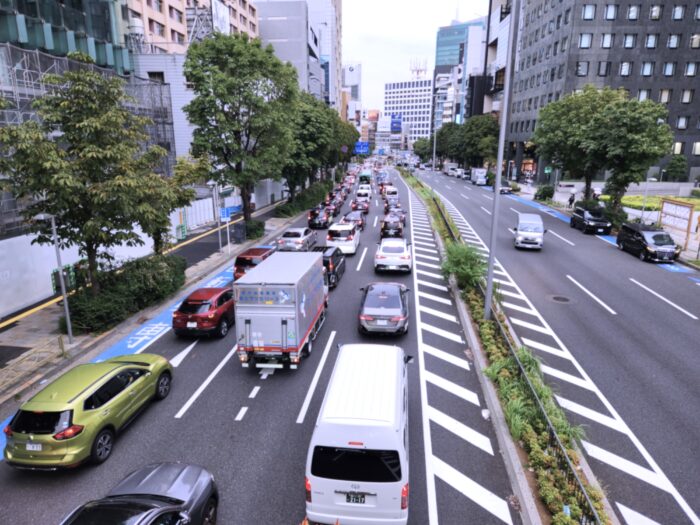 平日午後4時前の、久しぶりの青山通り。やっぱり退屈そうに渋滞してた。
