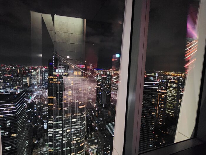 超高所でも、窓越しの夜景なら大丈夫……でもないな。