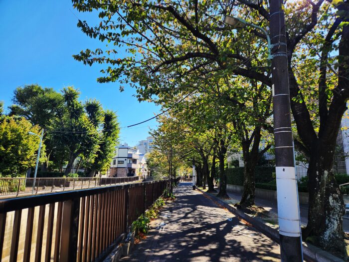 ランニングコースの途中の桜並木。例年より葉が残っているなあと思って。
