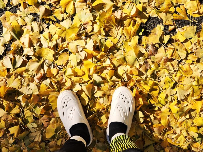 歩道の黄色。真冬が始まるサイン。
