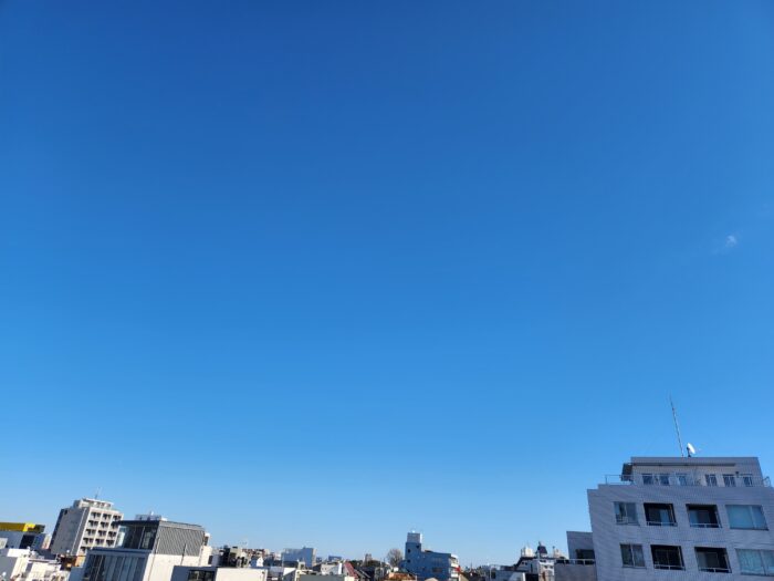 無修正でお届けする、僕の町の元日の空。ほぼ雲なき青空でした。
