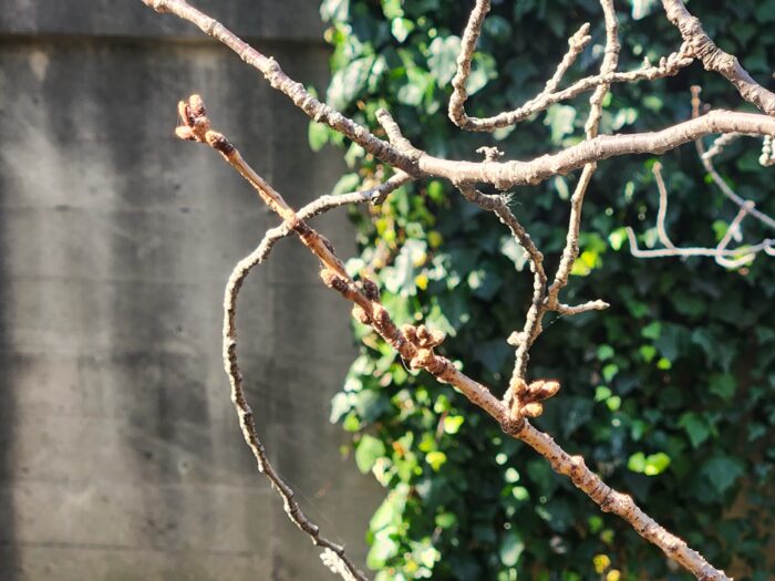 一方で桜は、ようやく蕾が形を現したような状態。ゆっくりでいいよと伝えたくなります。