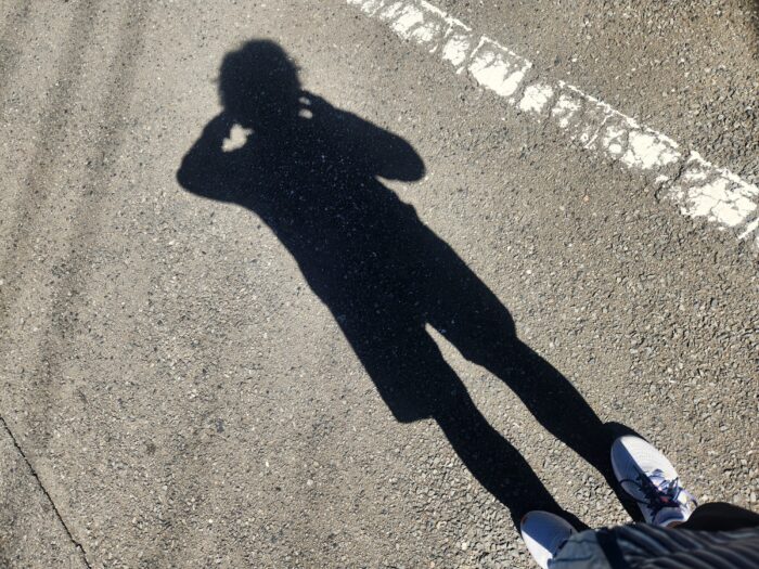 冬至から約2か月後の、お昼過ぎの影。短くなったんだろうな。