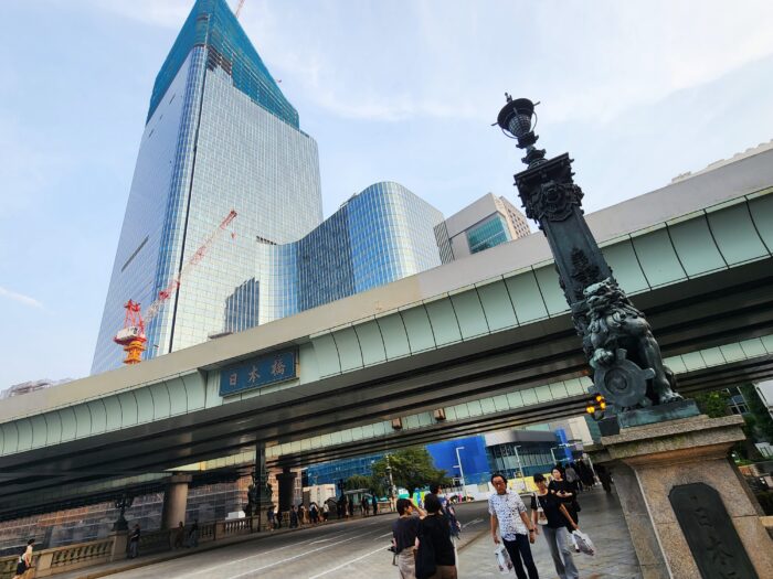 北側の袂から見た日本橋2025。首都高速がなくなれば、すっきりはするんだろうけどね。
