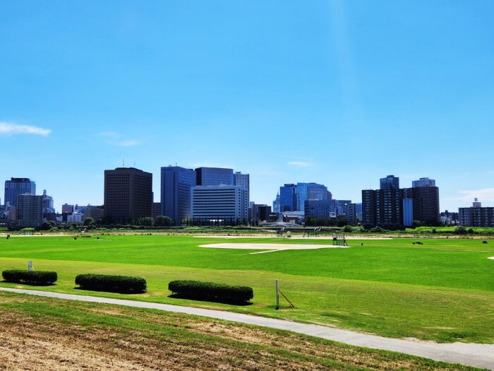 連日河川敷の風景ですが、整備された緑と案外キレイな空の青の相性がいいなあと思って。