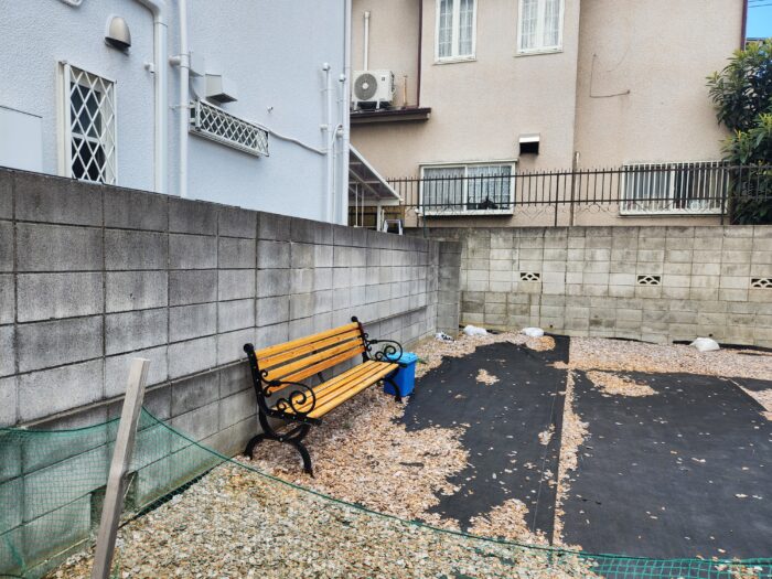 立ち入り不可の更地にベンチ。座り手知らずの椅子は、案外多い気がする。