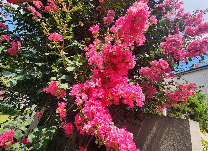 「百日紅は何と読む?」程度の質問では、簡単すぎてクイズ番組に採用されませんね。特に見事に咲き続けるこの時期は、誰に目にも鮮やかな存在だし。