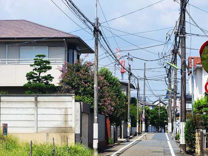 件のクレーン、やっぱりこの町中では数キロ離れても見えるんだ。