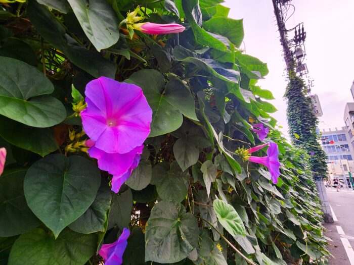 こちらは目白のアサガオ。午後3時でもパンっと咲いていた。2週間前だけど。