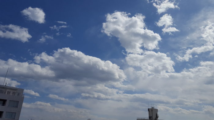 ベランダに早春の空。青の色が薄くなっていくなあ。